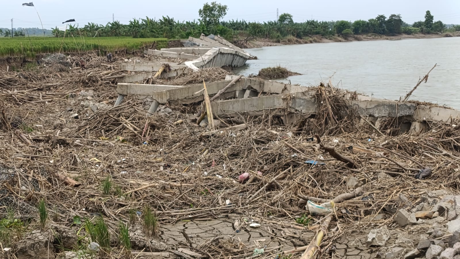 Sementara itu, pada 23 Desember 2024 lalu, PT Indopenta Bumi Pertiwi telah menyelesaikan pekerjaan dan melakukan serah terima kepada DPUSDA Bojonegoro. Namun, tak lama berselang bangunan sebelah barat mengalami ambruk hingga nampak tiang pancang terangkat dengan panjang 200 meter dan di Desa Tanggungan mencapai 70 meter. (*)