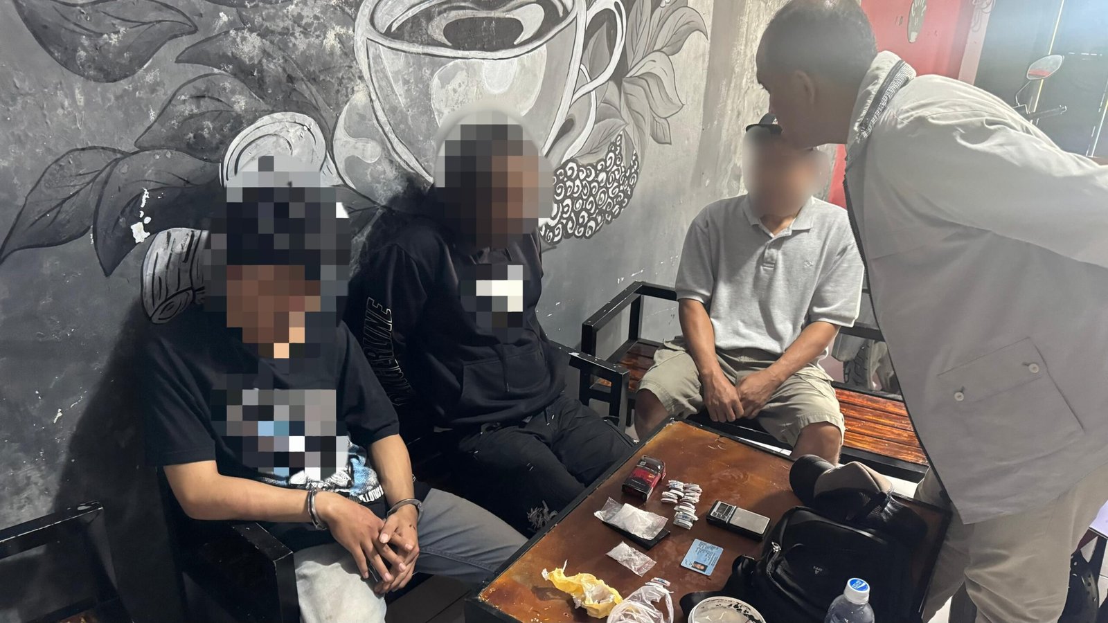 “Kemudian kedua tersangka kami bawa lagi ke kafe itu. Dalam penggeledahan, tim kami menyita barang bukti sabu, dengan berat total 38,90 gram. Juga timbangan elektrik, alat hisap hingga plastik klip kosong,” beber Sugiarto.