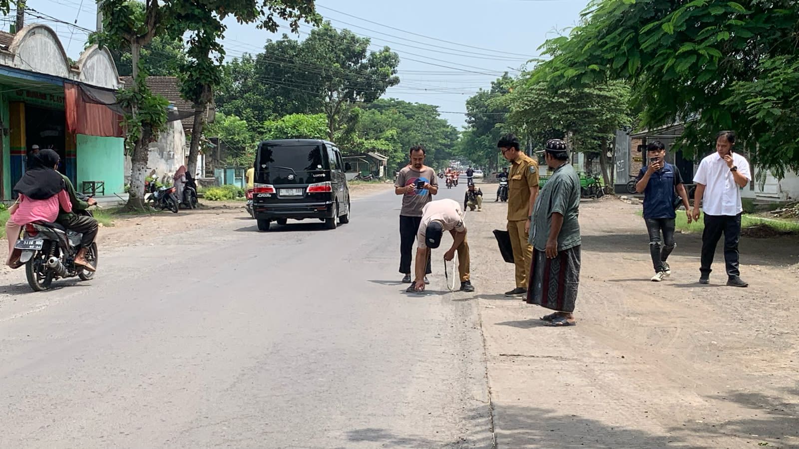 Petugas Bina Marga Jatim saat mengecek kondisi jalan rusak di Puger (D. K. Aji)