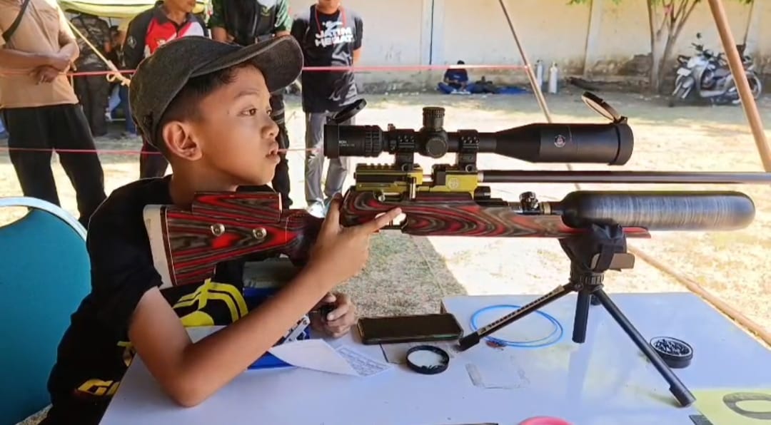 Atlet berusia 10 tahun itu tampak percaya diri bersaing dengan atlet lebih tua darinya di ajang yang digelar Persatuan Menembak Indonesia (Perbakin) Kota Pasuruan. Anak yang masih duduk di bangku kelas 5 SD itu berasal dari Malang.