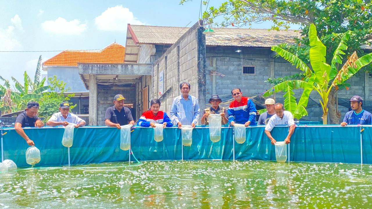 Kegiatan tersebut juga diisi dengan penyerahan simbolis bantuan infrastruktur kolam bioflok, penebaran benih ikan perdana, serta dukungan Pemerintah Desa Padeg melalui Surat Keputusan (SK) pengurus kelompok budidaya ikan bioflok.