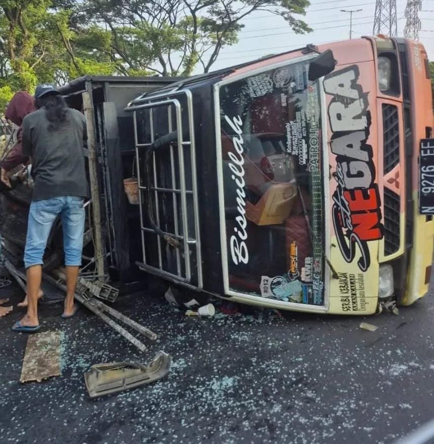 Pikap Muatan Material Bangungan Terguling di Tol Waru Sidoarjo, Begini Kronologinya