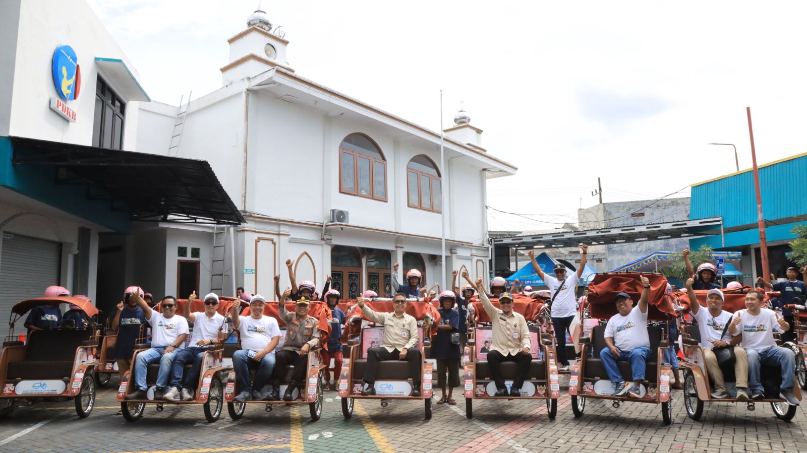 Selain itu, PLN juga menyerahkan bantuan sembako dan helm keselamatan kepada 50 pengemudi becak, serta mengadakan konvoi becak listrik mengelilingi Kota Jember.