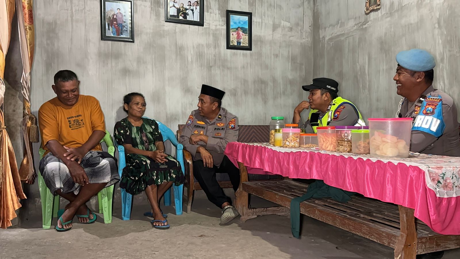 Ipda Purnomo bersama anggota Polres Lamongan mendatangi rumah pasutri yang sempat viral.