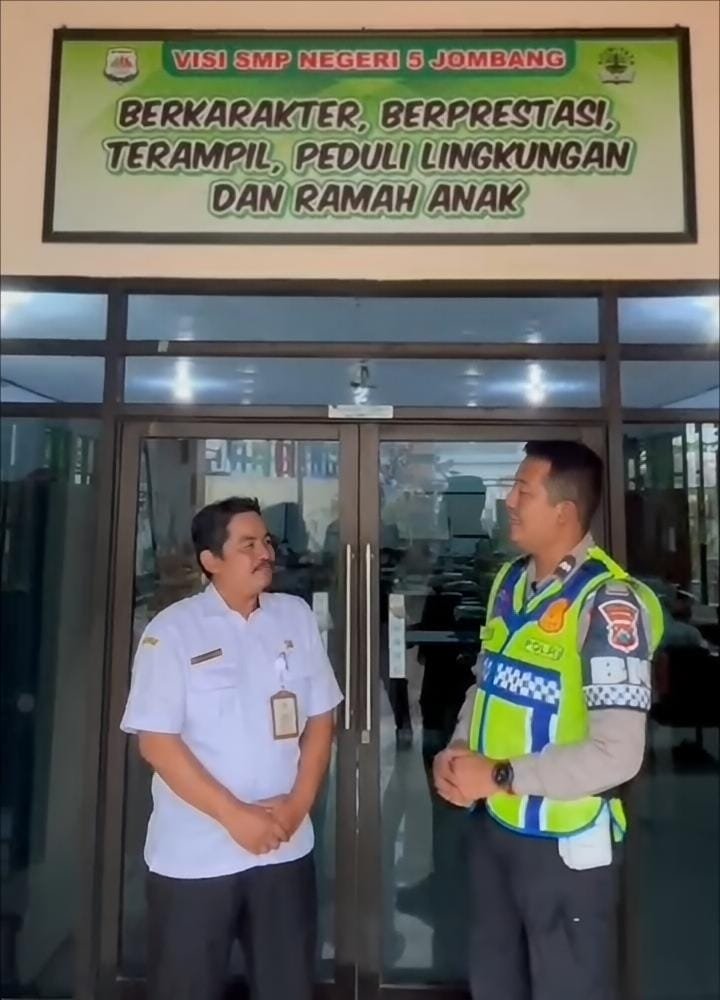 Petugas Satlantas Polres Jombang ketika mengunjungi SMPN 5 Jombang (istimewa)