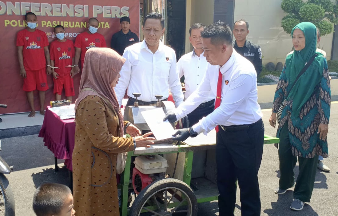 Di samping keberhasilan ungkap kasus pencurian gerobak es tebu, Satreskrim Polres Pasuruan Kota juga memberikan talih asih kepada korban pencurian, agar bisa dimanfaatkan untuk memenuhi kebutuhan dan sebagai modal usaha kembali.