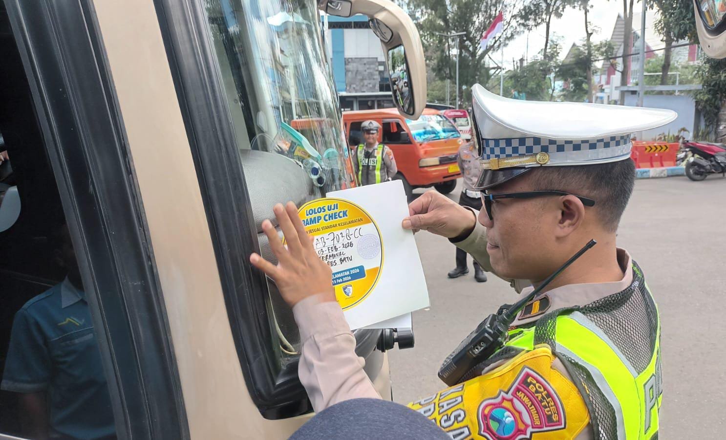 Dalam pelaksanaannya, petugas melakukan pemeriksaan teknis kendaraan, kelengkapan administrasi, kelayakan pengemudi, tes kesehatan gratis bagi awak angkutan, serta memberikan imbauan keselamatan berlalu lintas.