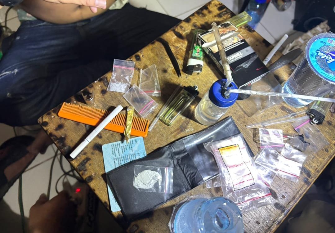 Dari lokasi awal, petugas menemukan tiga bungkus plastik klip berisi kristal diduga sabu yang disimpan di bawah kursi, satu plastik klip kosong, serta uang tunai Rp 390.000.