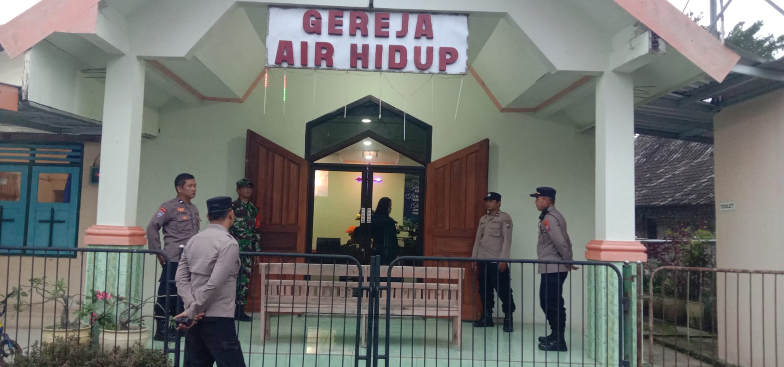 Selain pengamanan fisik, petugas juga melakukan patroli rutin serta koordinasi dengan pihak gereja guna mengantisipasi potensi gangguan keamanan.