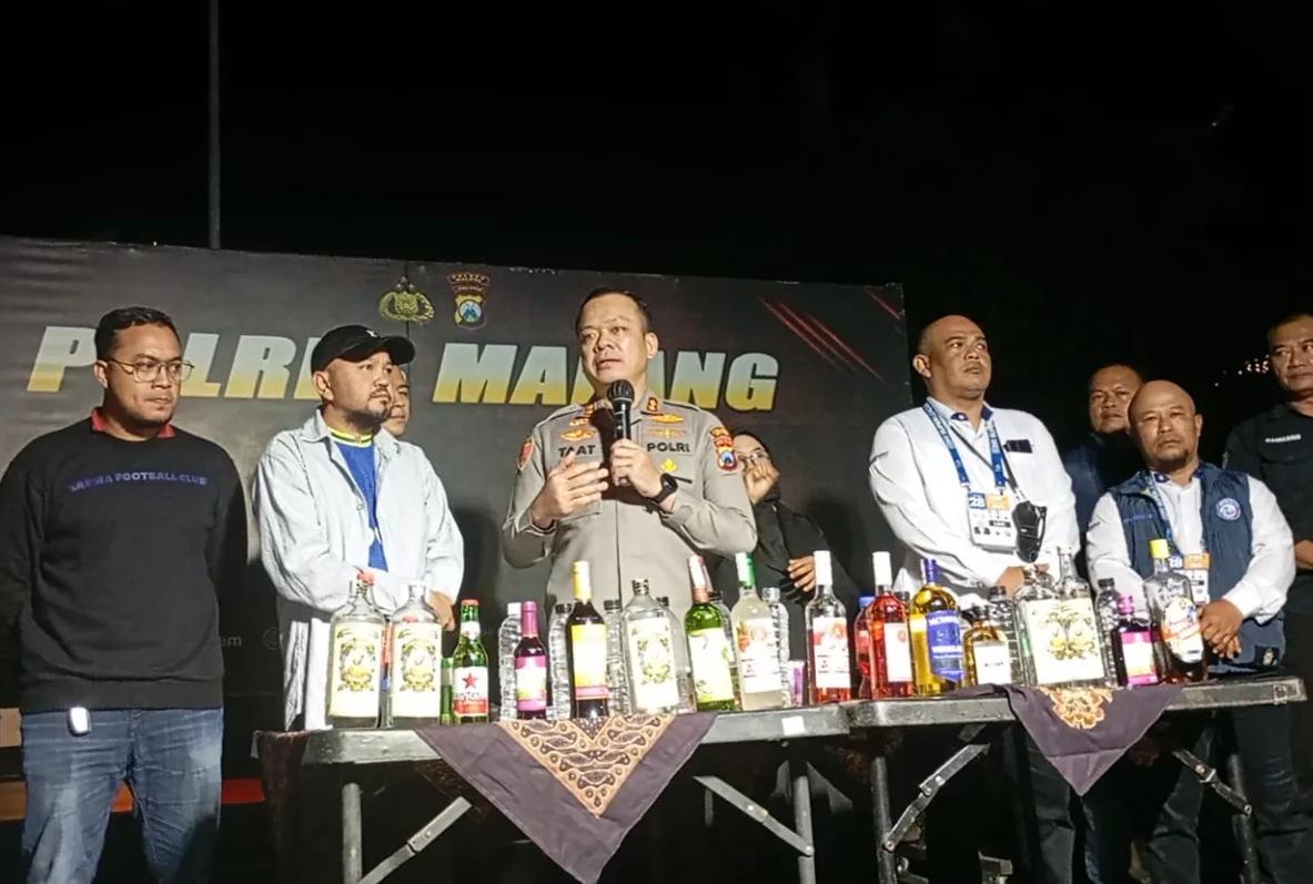 Kapolres Malang, AKBP Muhammad Taat Resdi mengatakan, pemeriksaan difokuskan di dua titik strategis, yakni Simpang Zipur dan Simpang Kedungpendaringan. Dari hasil razia tersebut, petugas berhasil mengamankan 33 botol miras dari 54 calon penonton.