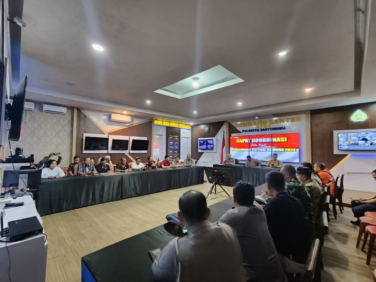 KabarBaik.co – Menjelang pelaksanaan Festival Kuwung 2024, Polresta Banyuwangi bersama instansi terkait menggelar rapat koordinasi di Command Center, Jumat (6/12). Rapat tersebut dihadiri oleh Pejabat Utama (PJU) Polresta Banyuwangi, TNI, Dinas Perhubungan, Dinas Kebudayaan dan Pariwisata, Dinas Kominfo, Dinas Kesehatan, Satpol PP, Forpimka Genteng, Kapolsek Gambiran, dan Kapolsek Srono.