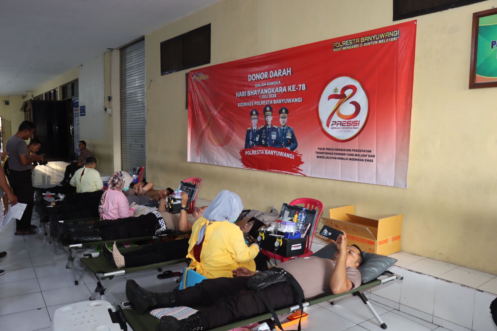 Di tempat yang sama, Kasidokkes Polresta Banyuwangi, PENATA Nur Prasetyo menambahkan kegiatan donor darah ini juga sebagian rangkaian Hari Bhayangkara ke-78. Jadi selain melakukan Bakti Sosial (Baksos), juga mengadakan donor darah untuk masyarakat.