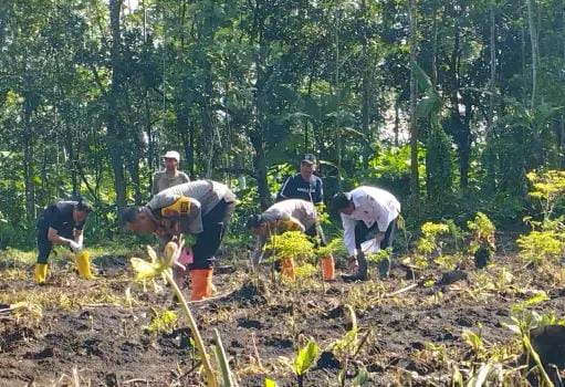 Polresta Malang Kota melakukan penanaman di lahan tidur Kecamatan Kedungkandang. (Foto: P. Priyono)