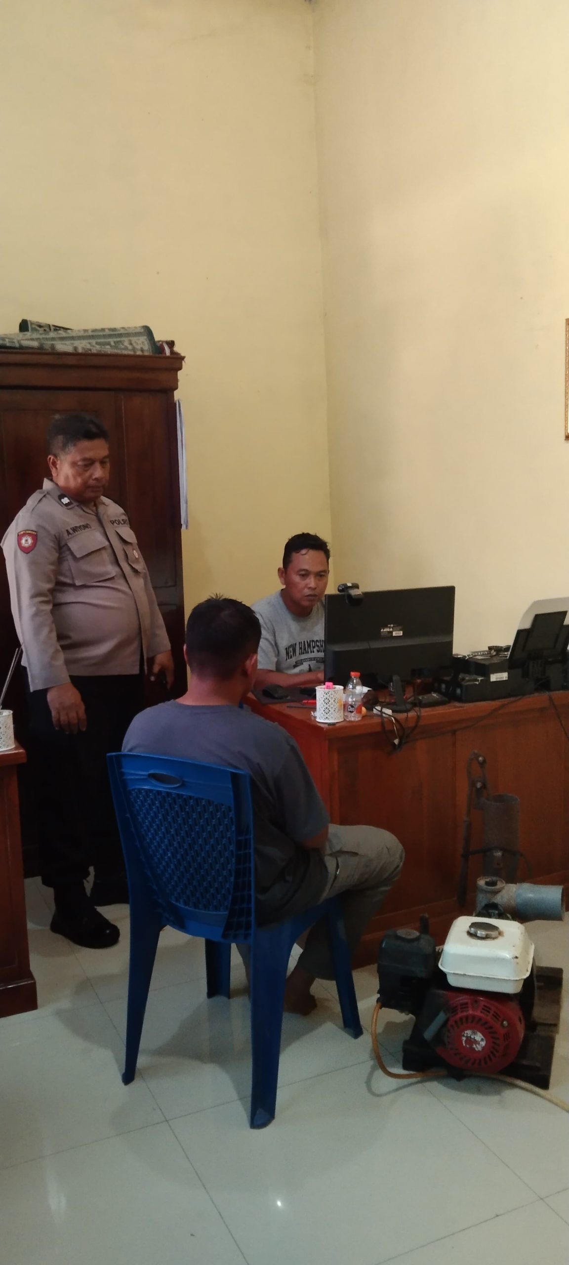Pelaku pencurian pompa air saat diinterogasi petugas