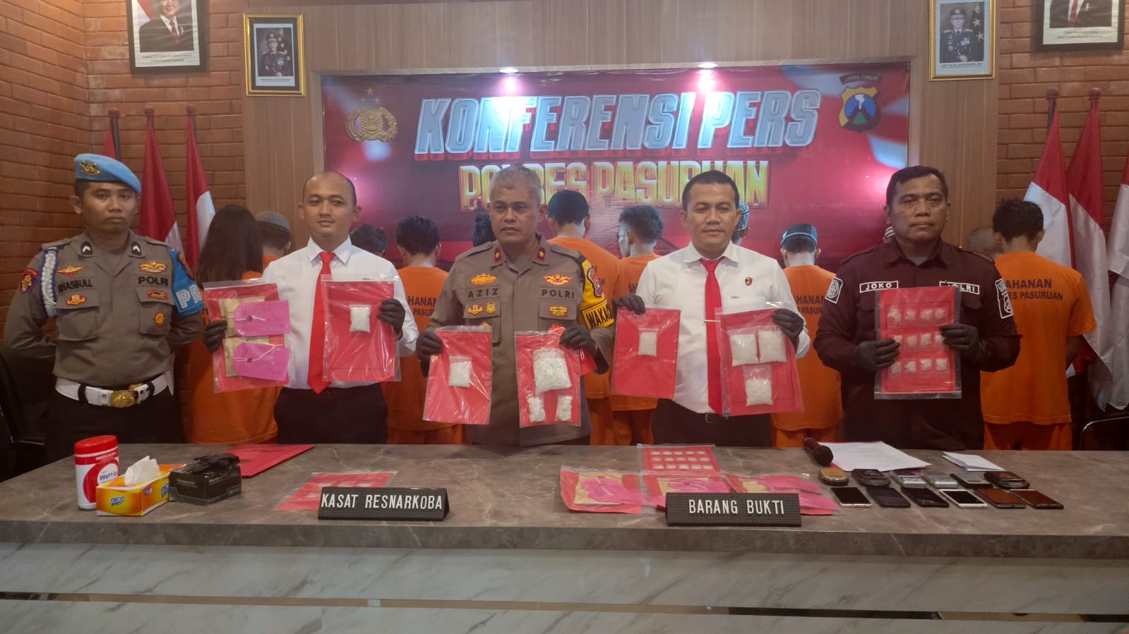 Agus menyatakan, semua tersangka merupakan pengedar sabu dan satu pengedar pil logo Y dengan barang bukti seribu butir. “Hanya satu pengedar pil koplo, semuanya merupakan jaringan narkoba yang selama ini berkeliaran di Pasuruan,” jelas Agus.
