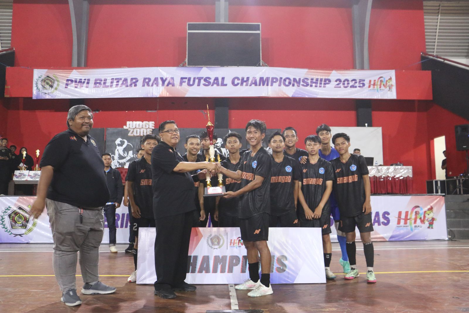KabarBaik.co – Turnamen futsal antar pelajar se-Kota/Kabupaten Blitar bertajuk PWI Blitar Raya Futsal Championship 2025 sukses digelar sejak 14-15 Februari 2025 di Gedung Olahraga (GOR) Soekarno-Hatta, Kota Blitar.