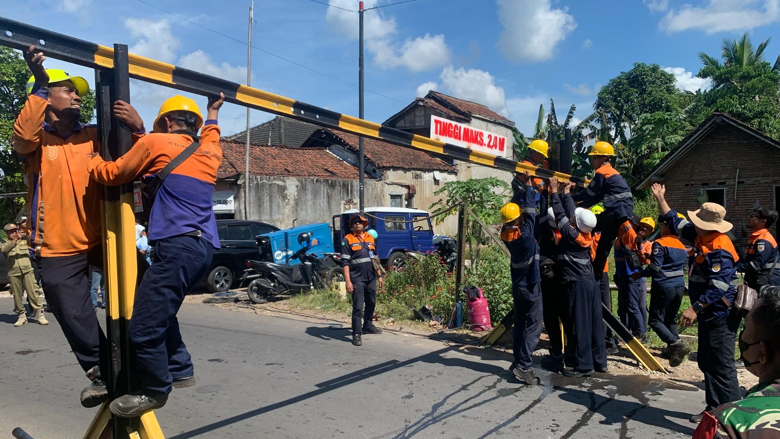 KabarBaik.co – PT Kereta Api Indonesia Daerah Operasi 9 Jember melakukan pemasangan portal atas di perlintasan sebidang yang berada di wilayah Kelurahan Baratan, Jember. Hal itu sebagai upaya untuk meningkatkan keselamatan perjalanan kereta api dan pengguna jalan.