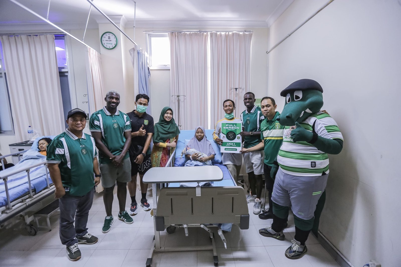 Manajemen dan perwakilan pemain Persebaya Surabaya berbagi kebahagiaan dengam berkunjung ke Rumah Sakit Bhakti Dharma Husada, Selasa (18/6) siang. (Foto: istimewa/Official Persebaya)