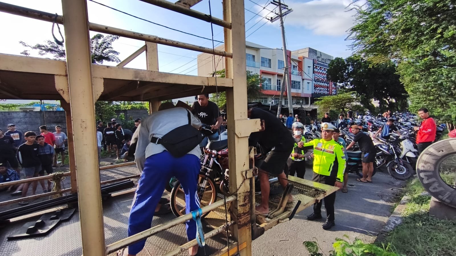 Motor yang digunakan balap liar diangkut ke atas truk (Dok. Polresta Sidoarjo)