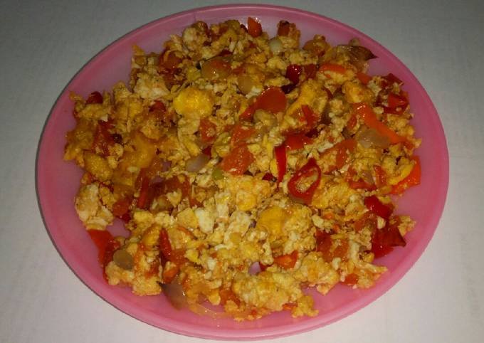 - Masukkan telur, lalu orak-arik hingga matang.