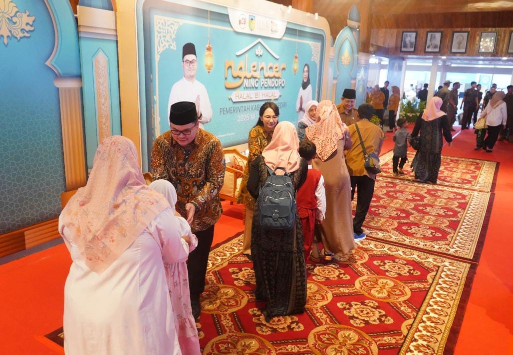KabarBaik.co – Ribuan pegawai Pemerintah Kabupaten (Pemkab) Kediri mengikuti halal bihalal yang diadakan Bupati Kediri Hanindhito Himawan Pramana di Pendopo Panjalu Jayati, Senin (14/4).