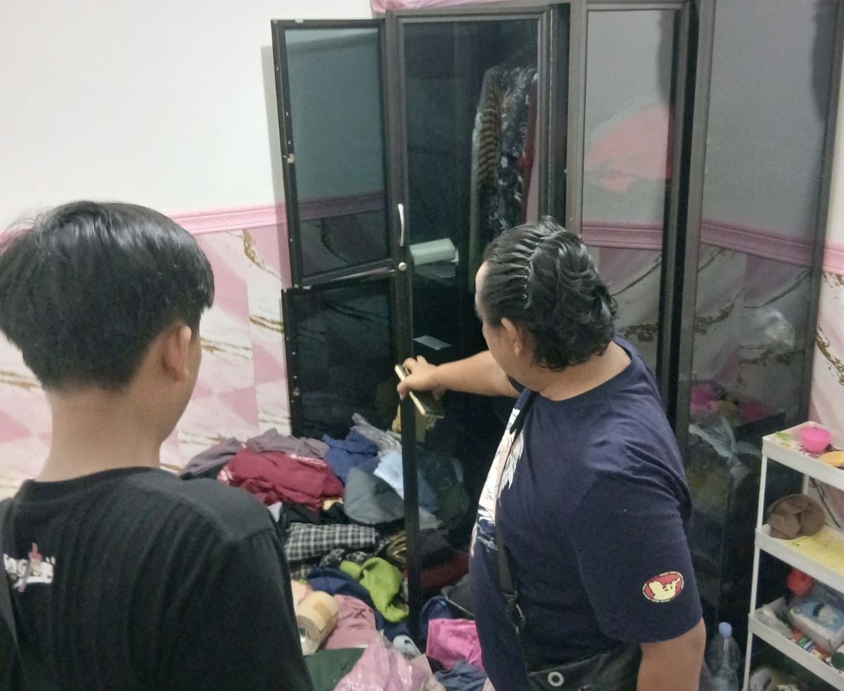 Korban lantas ditelepon agar segera pulang. Saat dicek, pintu rumah sudah keadaan terbuka karena dirusak secara paksa. Lemari di kamar juga acak-acakan diduga diobok-obok maling.