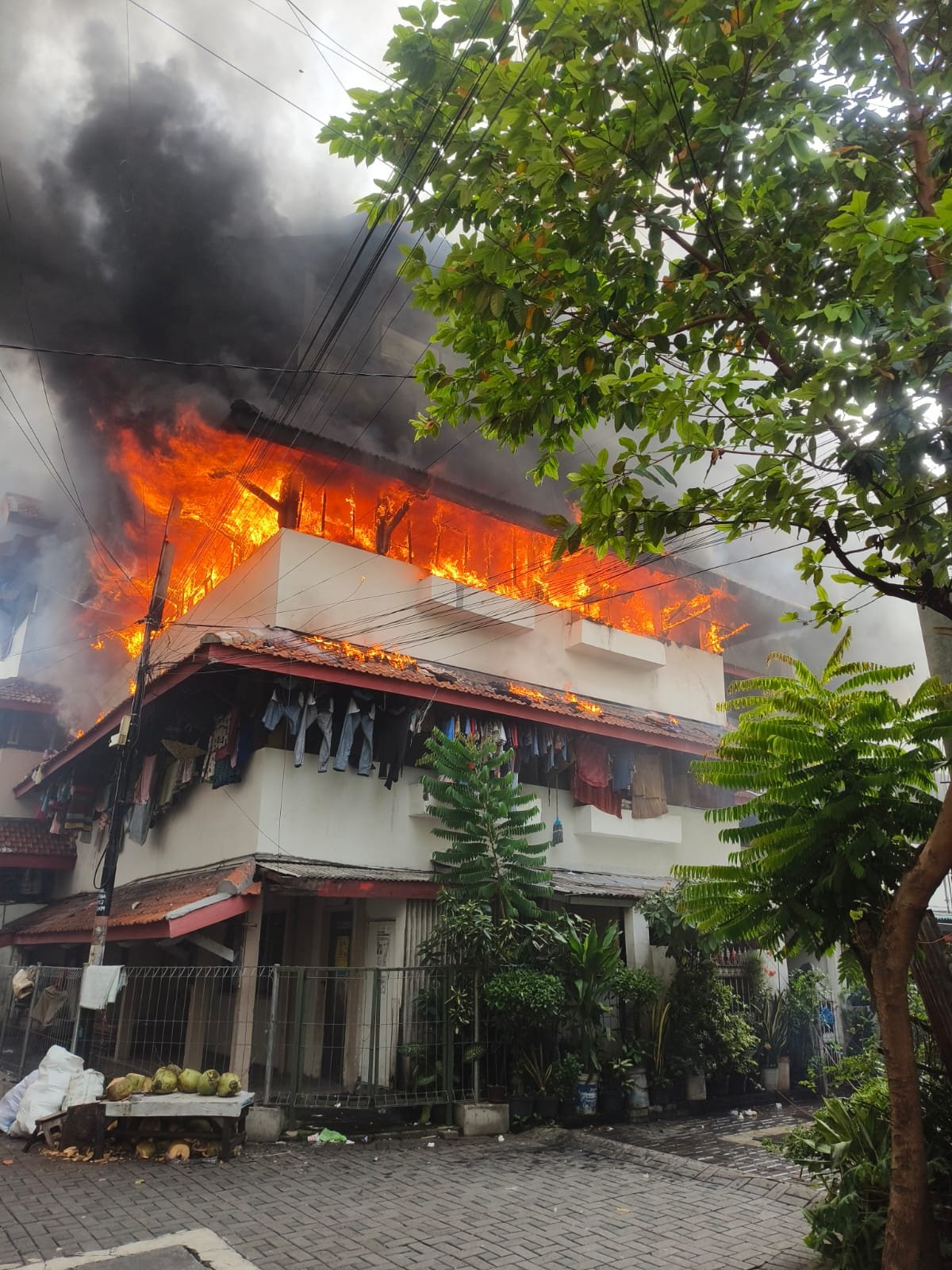 “Yang terbakar lantai paling atas. Warga sudah telepon 112 supaya damkar segera ke lokasi untuk melakukan pemadaman,” imbuhnya.