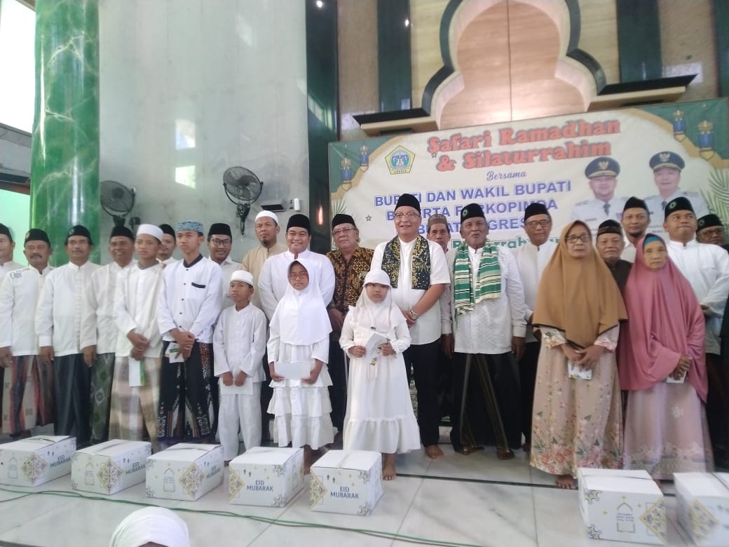 Safari Ramadan kali ini juga menjadi momentum berbagi. Sebanyak 120 anak yatim menerima santunan dari PT Freeport, Partai Gerindra DPC Gresik, dan beberapa pihak lainnya. Setelah salat tarawih, panitia juga membagikan beras kepada warga.