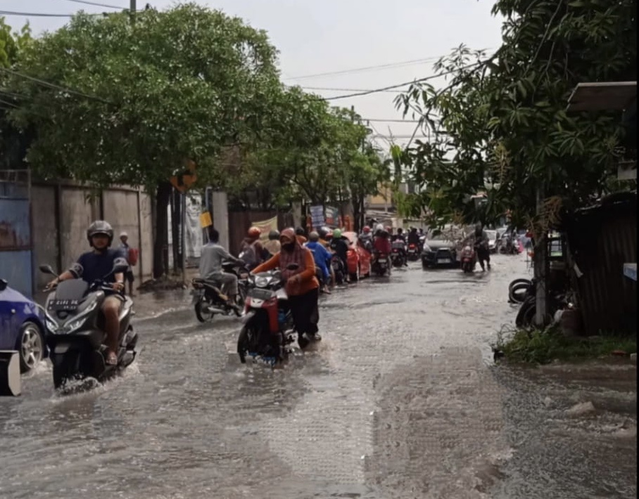 Kondisi air yang genangi Jalan KH. Syafi'i depan Perumahan PPS Gresik. (Foto: Ist)