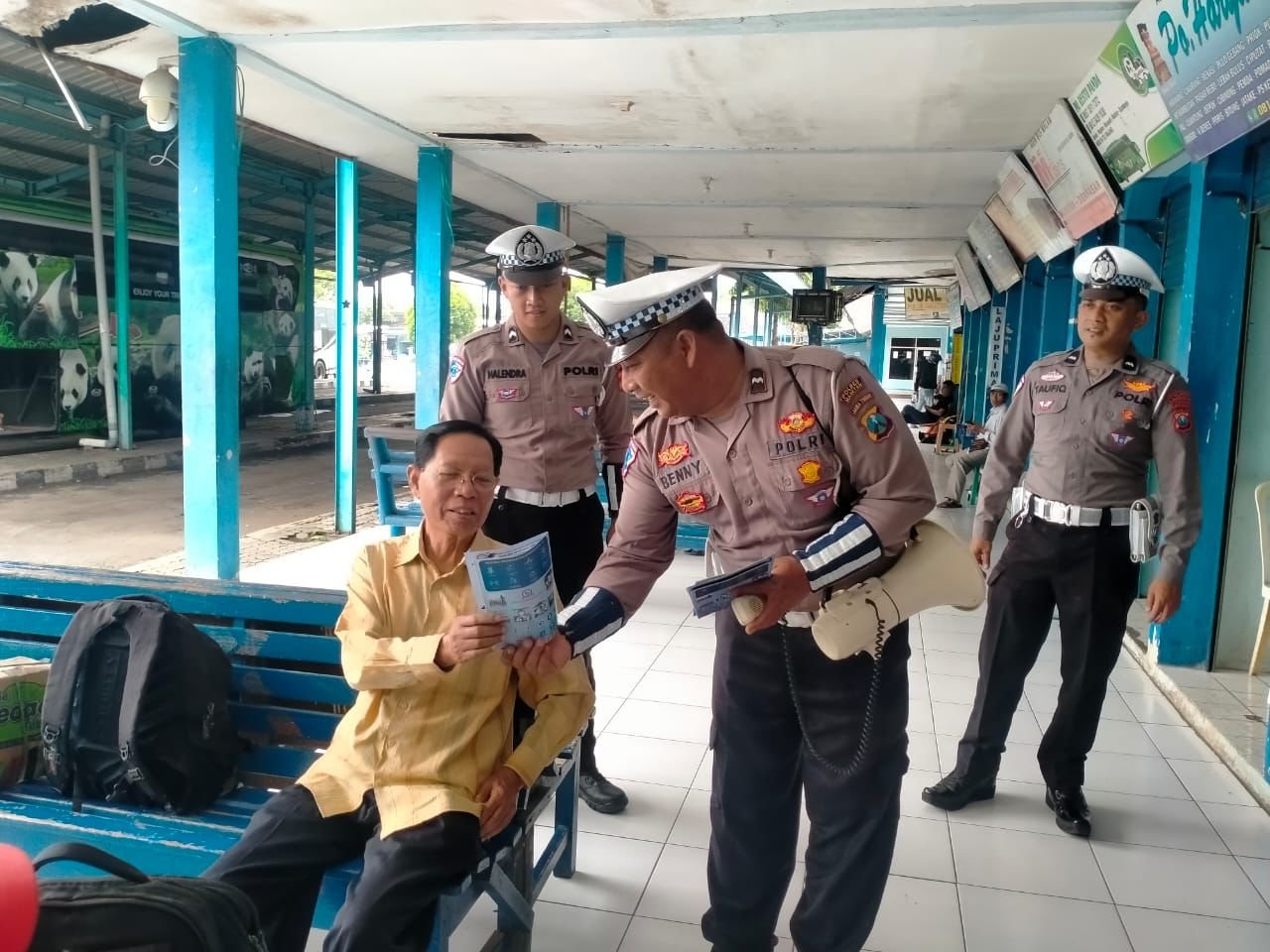 Salah satu kegiatan yang menonjol adalah pembagian brosur keselamatan berlalu lintas kepada masyarakat dan sopir angkutan umum di Terminal Magetan, Selasa (14/1). Kegiatan ini dilaksanakan oleh anggota Unit Kamsel Satlantas Polres Magetan.