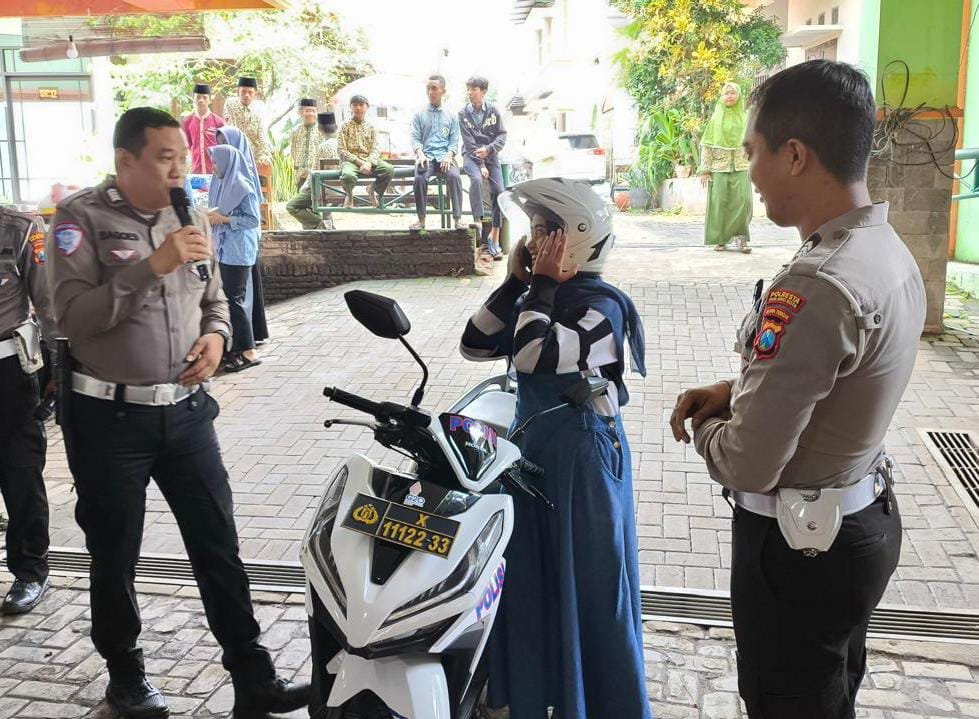 Dina menyampaikan bahwa kegiatan tersebut bertujuan memberikan pemahaman kepada para santri mengenai pentingnya tertib berlalu lintas, sekaligus menanamkan nilai-nilai disiplin dan tanggung jawab sosial dalam kehidupan sehari-hari.