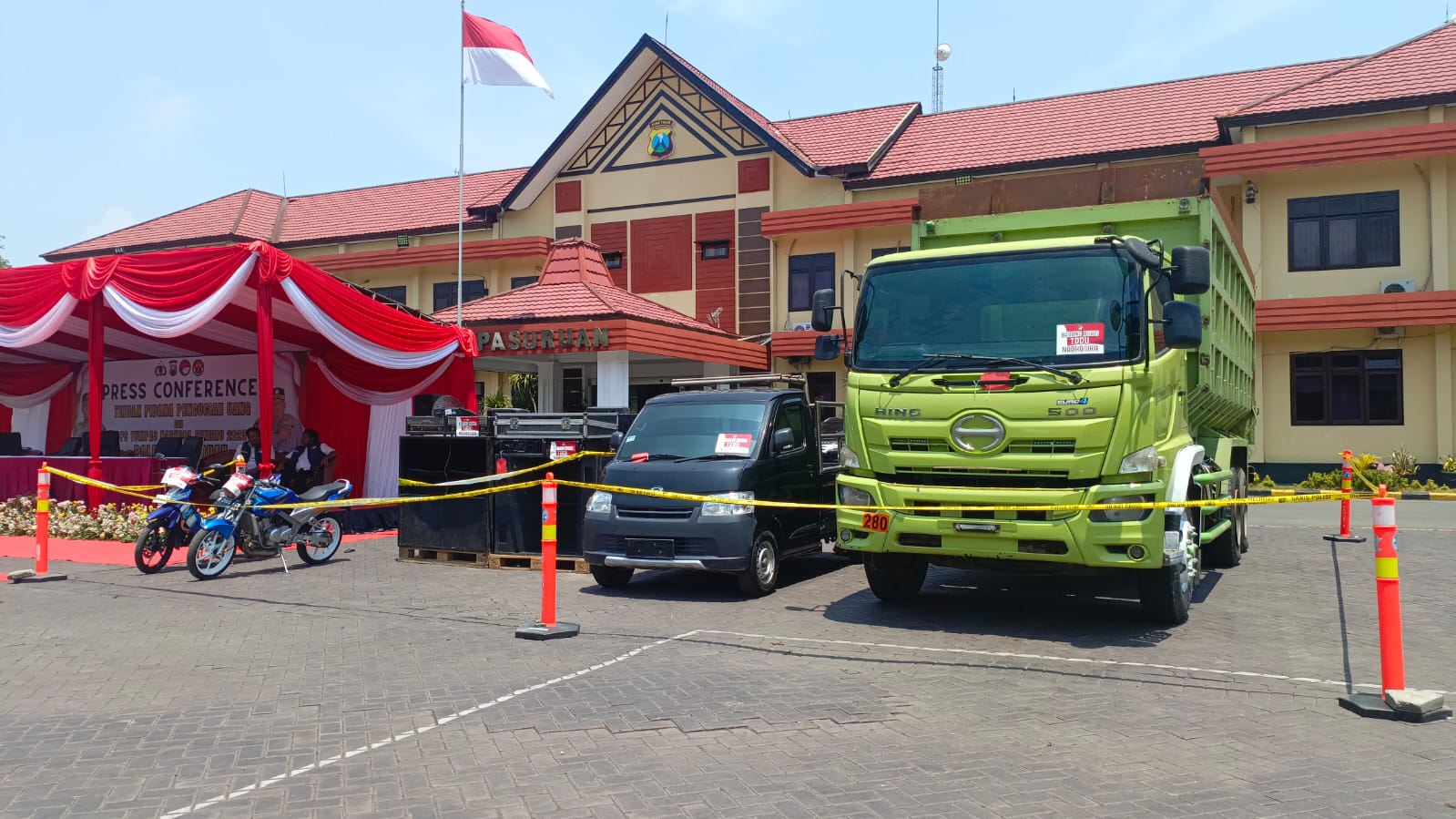 Barang bukti yang disita berupa tiga dump truck, satu mobil Terios, satu pickup Grandmax, dua sepeda motor, serta perlengkapan elektronik. Total aset ditaksir mencapai Rp 3 miliar. “Tersangka mencoba menyamarkan hasil kejahatannya lewat aset bergerak maupun tidak bergerak. Ada juga rekening bank dengan identitas fiktif,” kata Yoyok.