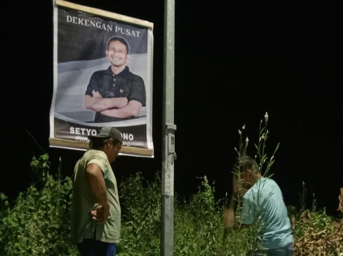 Pemasangan bener bergambarkan foto Setyo Wahono ini tersebar di seluruh Desa dan kecamatan di Kabupaten Bojonegoro.