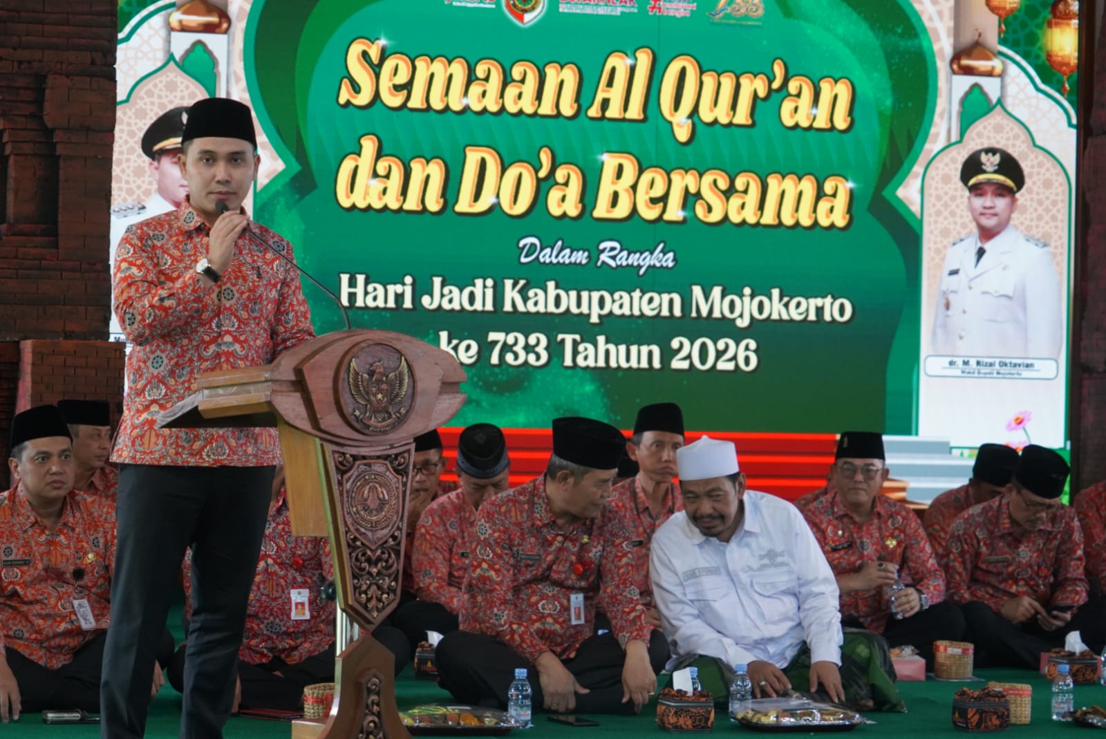 KabarBaik.co, Mojokerto – Pemerintah Kabupaten (Pemkab) Mojokerto menggelar Sema’an Alquran sebagai bagian dari rangkaian Hari Jadi ke-733. Kegiatan yang berlangsung di Pendapa Graha Maja Tama (GMT) ini menjadi penguat nilai spiritual dalam mengiringi pembangunan di Bumi Majapahit.