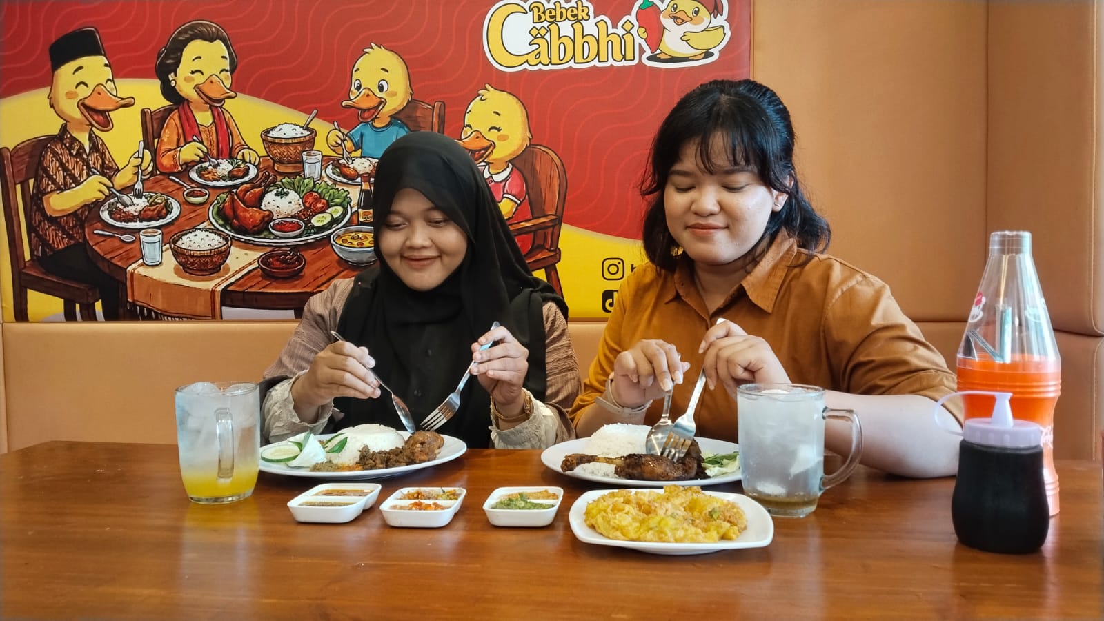 “Menu andalan kami adalah Bebek Cabbhi. Hanya dengan Rp 16.000-an, pelanggan sudah mendapatkan paket komplit berisi nasi, bebek, serundeng, sambal, dan yang paling spesial adalah tambahan tetelan pedas,” ujar Miftachul.