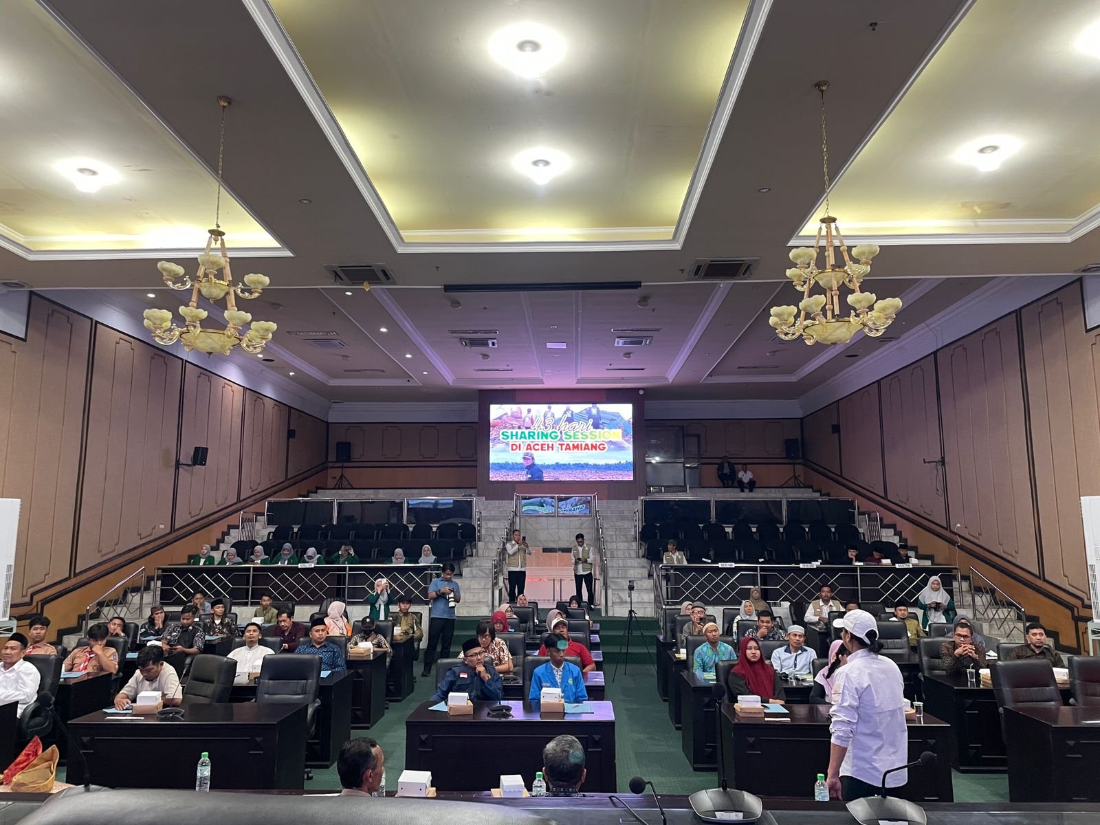 Sesi utama menghadirkan Direktur Rombong Sedekah sekaligus Leader Tim Aksi S.O.S di Aceh Tamiang, Rossy Prima Antoni. Selama sekitar satu jam, ia memaparkan kondisi terkini di lapangan, tantangan distribusi bantuan, hingga kebutuhan mendesak warga.