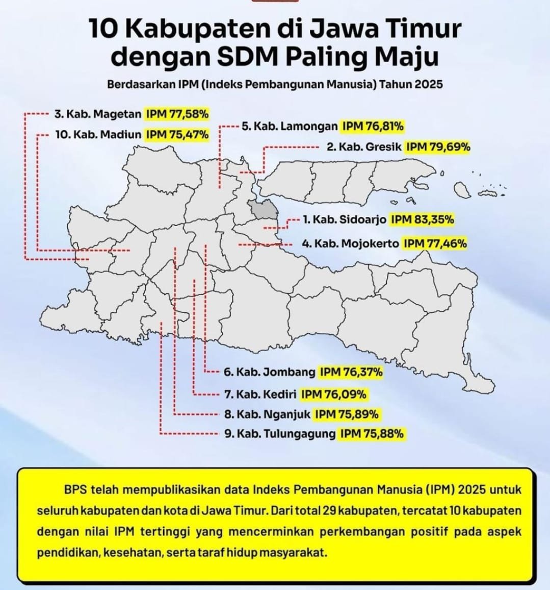 KabarBaik.co – Sidoarjo memasuki 2025 dengan status baru sebagai episentrum kualitas sumber daya manusia di Jawa Timur. Di tengah derasnya arus urbanisasi dan tekanan layanan publik, Sidoarjo justru mampu menjaga performa pembangunan manusianya pada level tertinggi di antara seluruh kabupaten se-Jatim.