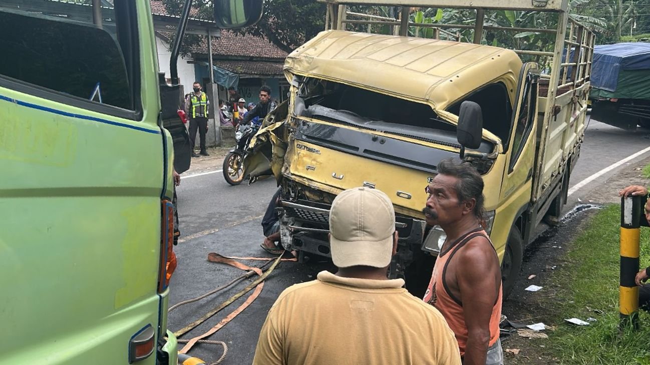 KabarBaik.co – Kecelakaan lalu lintas yang melibatkan dua unit truk terjadi di Jalan Raya Jember-Banyuwangi, tepatnya di depan Pondok Pesantren Nurul Ulum, Desa Tegalrejo, Kecamatan Mayang, Jember.