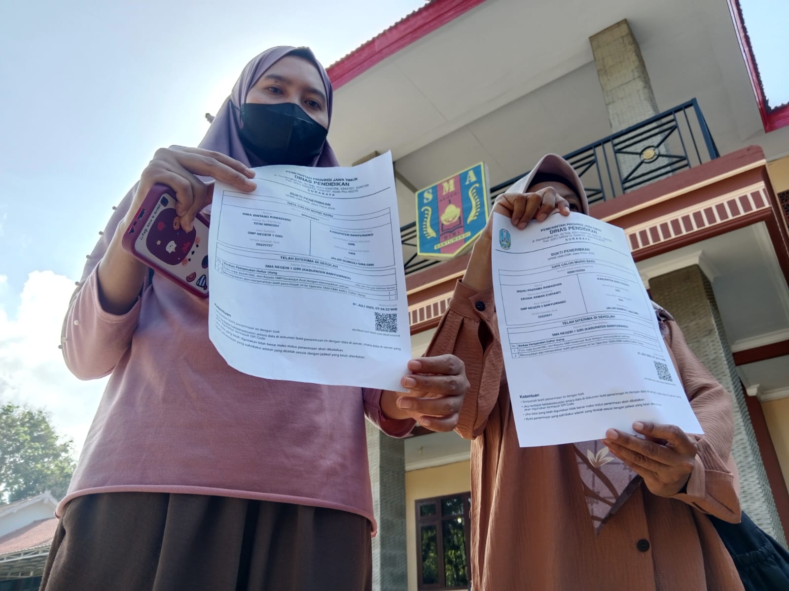 Senada juga disampaikan wali murid lain bernama Titin, anaknya sudah sangat semringah diterima di SMA Negeri 1 Giri. Ia dari pagi semangat mengantarkan anaknya mengurus registrasi di sekolah. Namun setiba di sekolah malah tidak diterima.