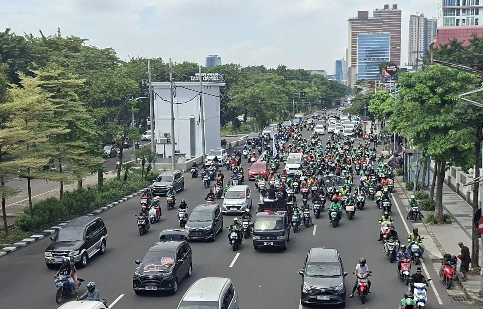 Ribuan driver ojol turun ke jalan berkonvoi lakukan aksi unjuk rasa (Istimewa)
