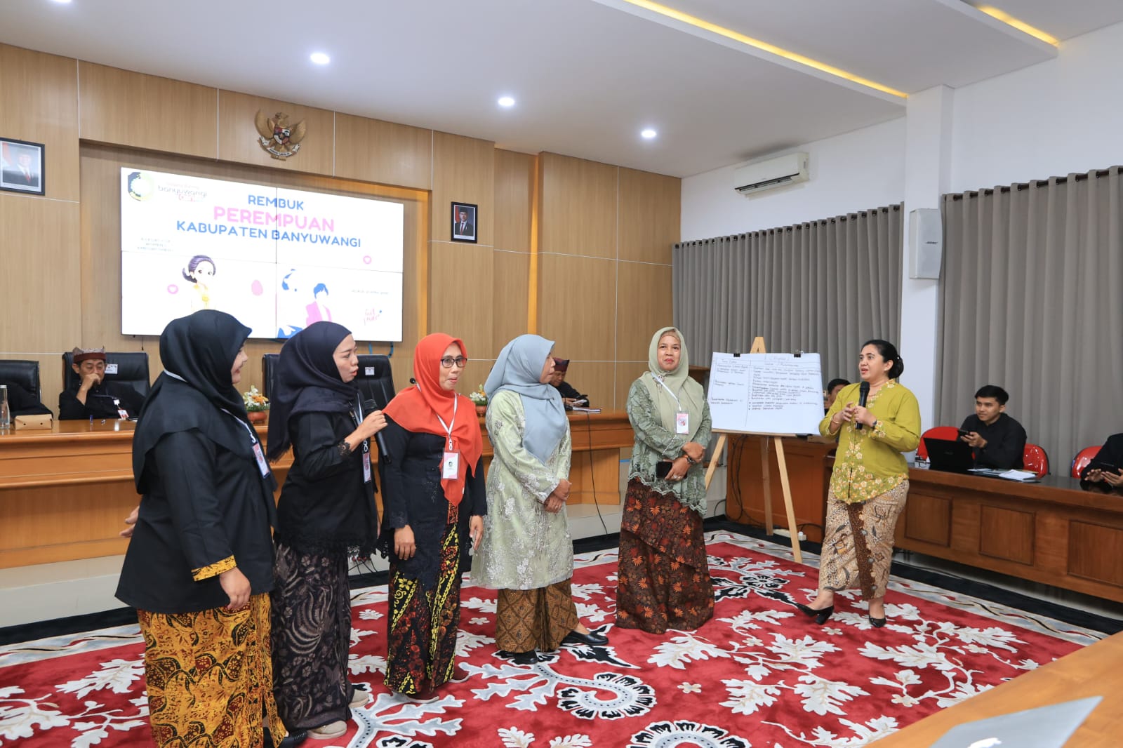 Kegiatan ini diikuti puluhan perempuan dari berbagai latar belakang, mulai dari organisasi kemasyarakatan, keagamaan, tenaga kesehatan, pelaku usaha, hingga komunitas literasi dan pendamping sosial, yang berlangsung di Aula Minak Jinggo, Kantor Pemkab Banyuwagi, Selasa (21/4).