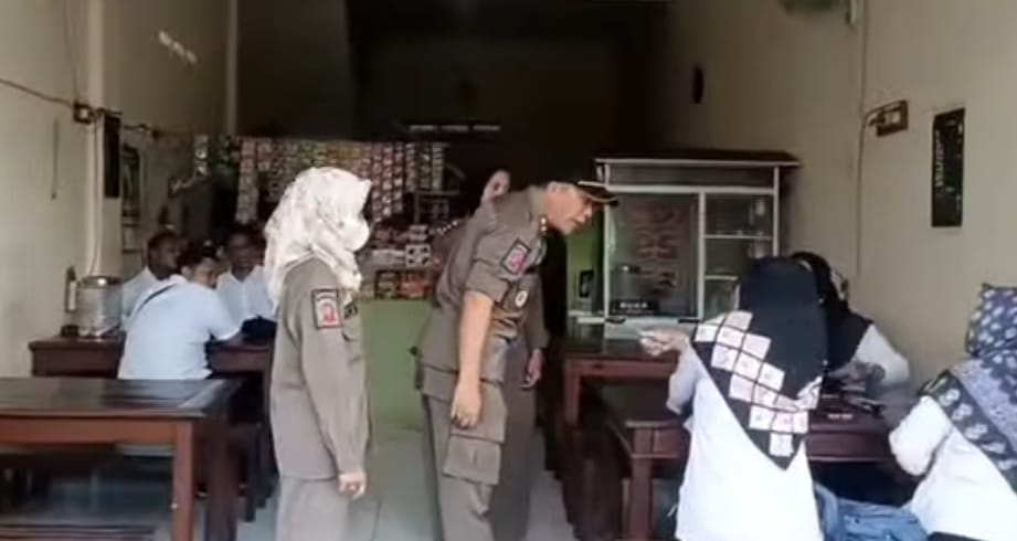 Satpol PP Kota Pasuruan melakukan razia terhadap ASN yang nongkrong di warung saat jam kerja. (Foto: Zia Ulhaq)
