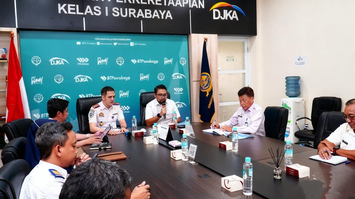 Wakil Bupati Nganjuk Trihandy Cahyo Saputro, didampingi Kepala Dinas Perhubungan Nganjuk Suharono, melakukan audiensi khusus di Ruang Rapat Balai Teknik Perkeretaapian (BTP) Kelas I Surabaya untuk mengajukan sejumlah usulan strategis perbaikan infrastruktur perkeretaapian di wilayah Nganjuk.