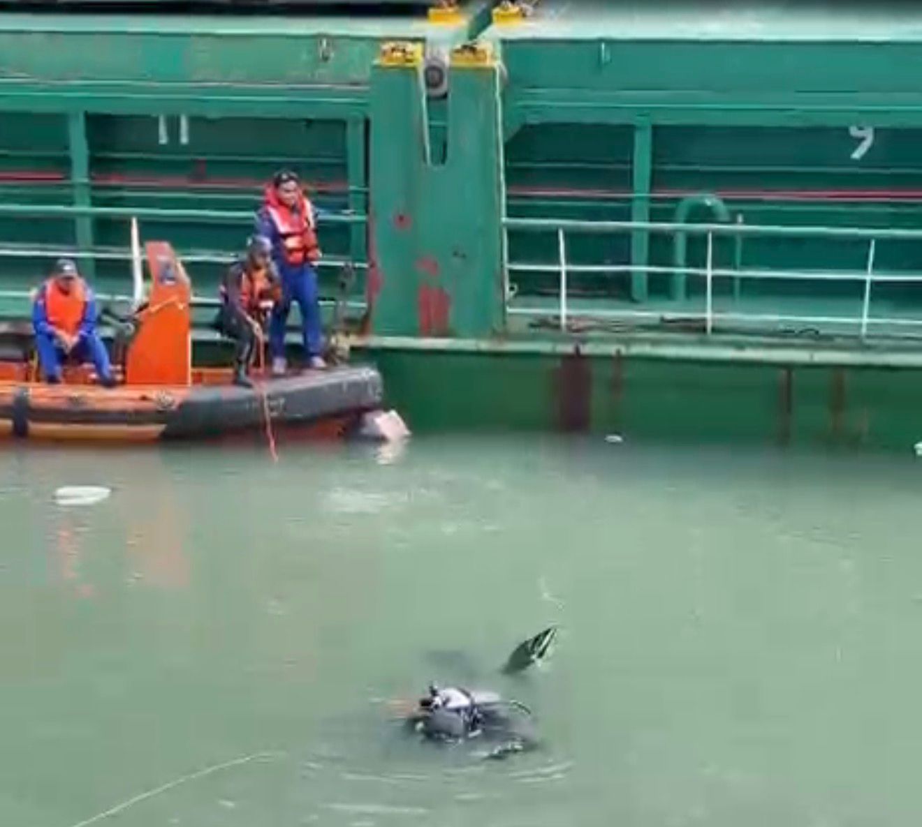 Sebanyak tiga penyelam dari Kantor SAR Kelas A Surabaya diterjunkan dengan bantuan satu personel penyelam dari BPBD Kota Surabaya. Namun, upaya bawah air sempat terkendala oleh jarak pandang (visibility) yang sangat terbatas di dasar perairan.