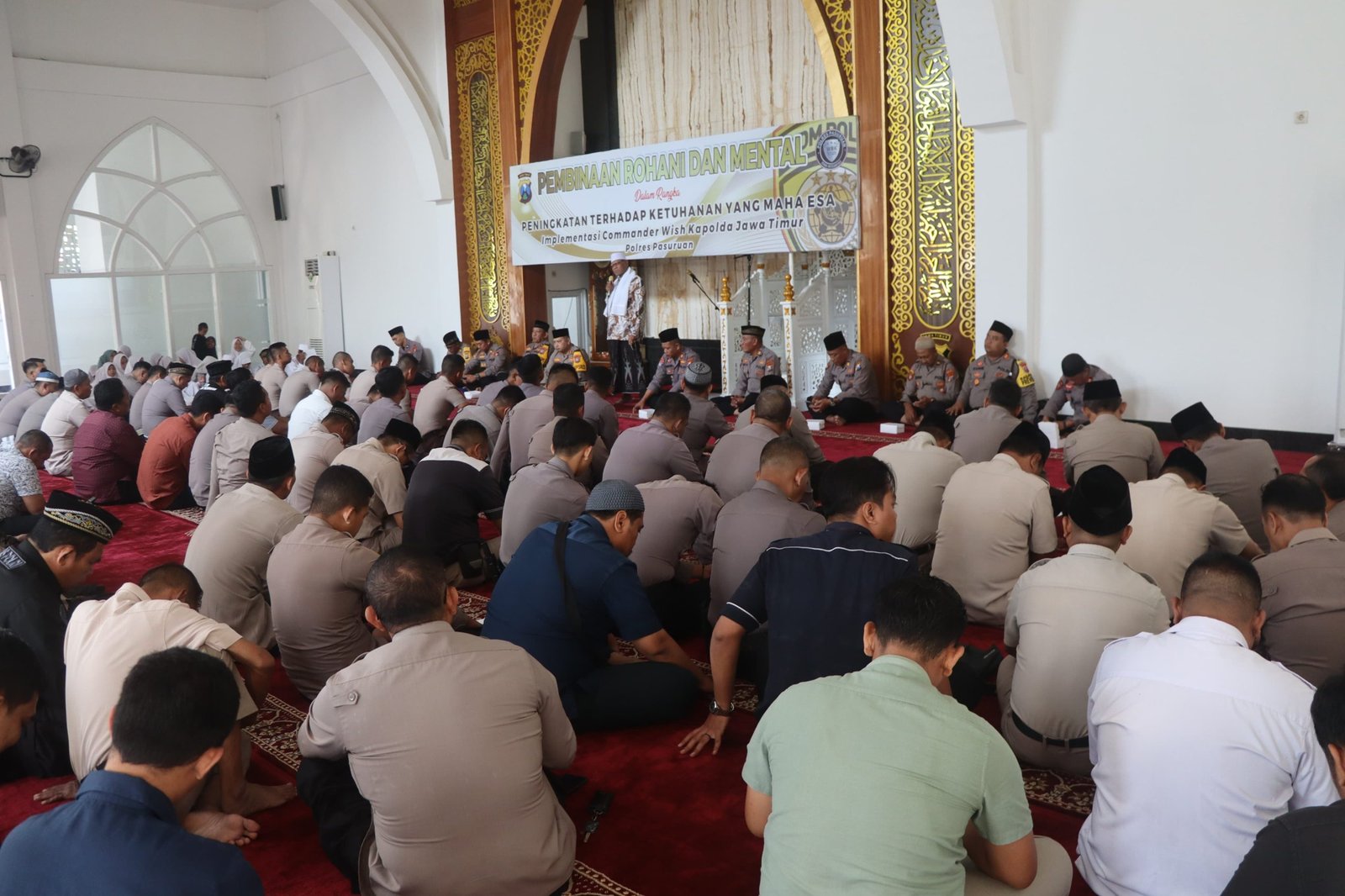 Kapolres Pasuruan AKBP Teddy Chandra mengatakan, kegiatan tersebut dilaksanakan untuk meningkatkan ketakwaan dan ketetapan iman anggota Polres Pasuruan dalam menjalankan tugas di lapangan agar penuh dengan keihklasan.