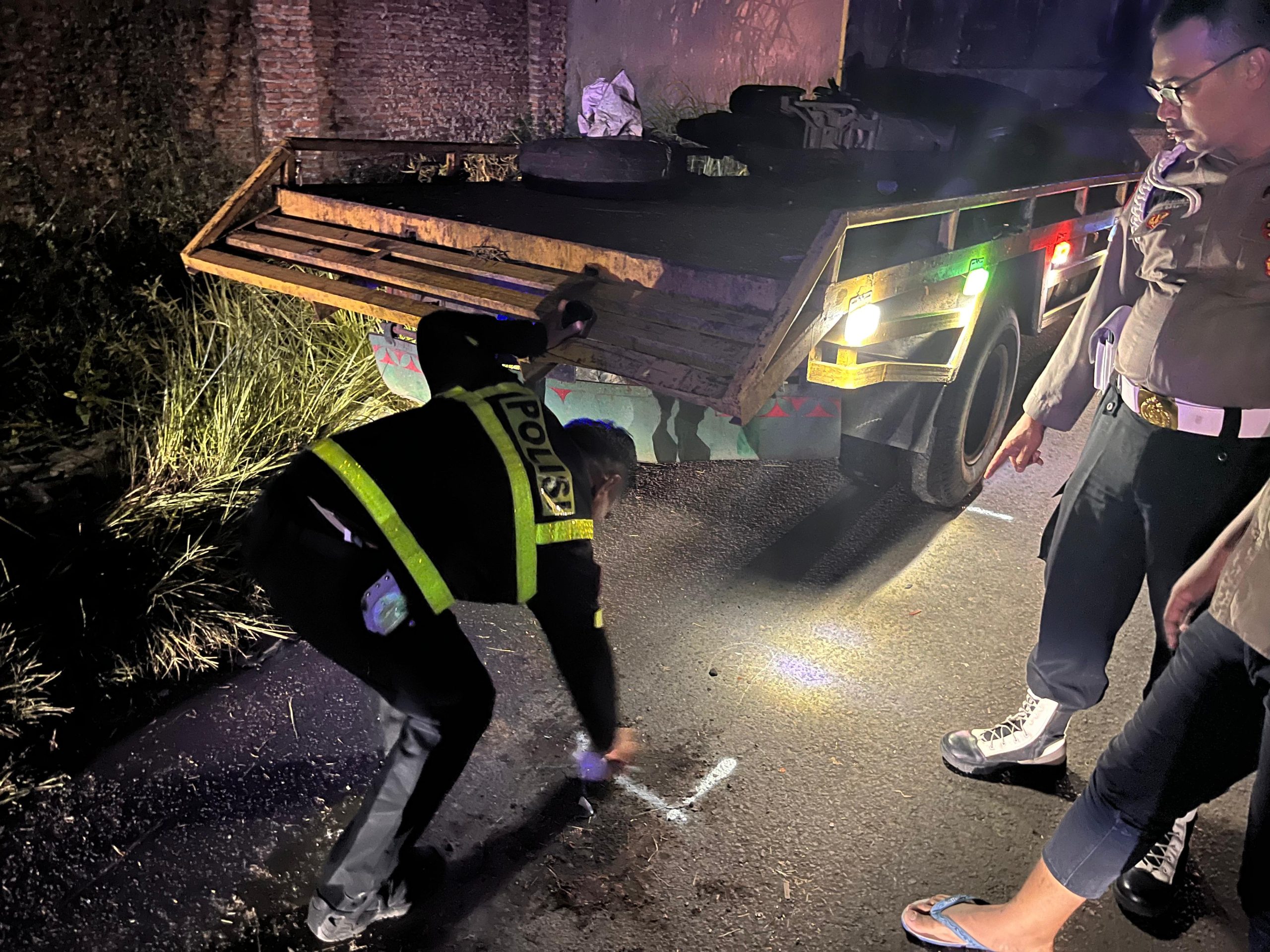Diduga, korban tidak melihat keberadaan truk karena kondisi jalan yang gelap.