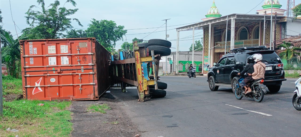 Truk Kontainer Terguling di Embong Tekuk Balongbendo Sidoarjo