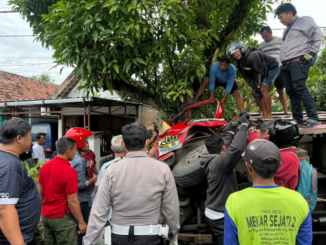 Akibat benturan tersebut, kondisi kepala truk telur mengalami kerusakan parah dan ringsek. Akibat, kendaraan tersebut juga menabrak pohon yang berada di dekat bahu jalan, memperparah kerusakan di bagian depan kendaraan.