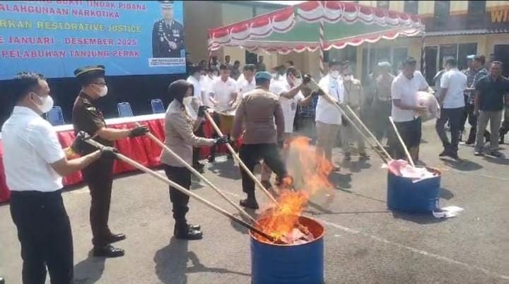 KabarBaik.co – Polres Pelabuhan Tanjung Perak kembali menunjukkan komitmen kuat dalam memerangi narkotika. Dalam momentum akhir tahun, barang bukti hasil tindak pidana penyalahgunaan narkoba dimusnahkan secara di halaman Mapolres Pelabuhan Tanjung Perak.
