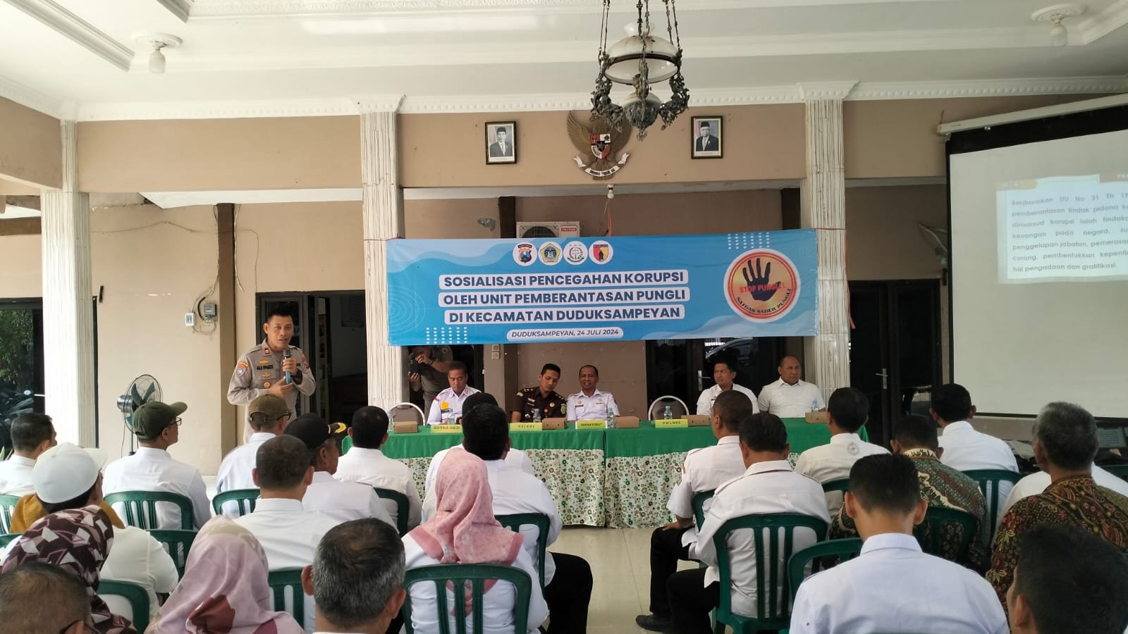 Dalam sosialisasi ini turut dihadiri Kasi Pidsus Kejaksaan Negeri Gresik Alifin Nurahmana Wanda, Kasat Intelkam Polres Gresik Iptu Anang Fathoni, dan Kanit Tipikor Satreskrim Polres Gresik Iptu Ketut Riasa, Camat Duduksampeyan Dedy Hartadi. (*)